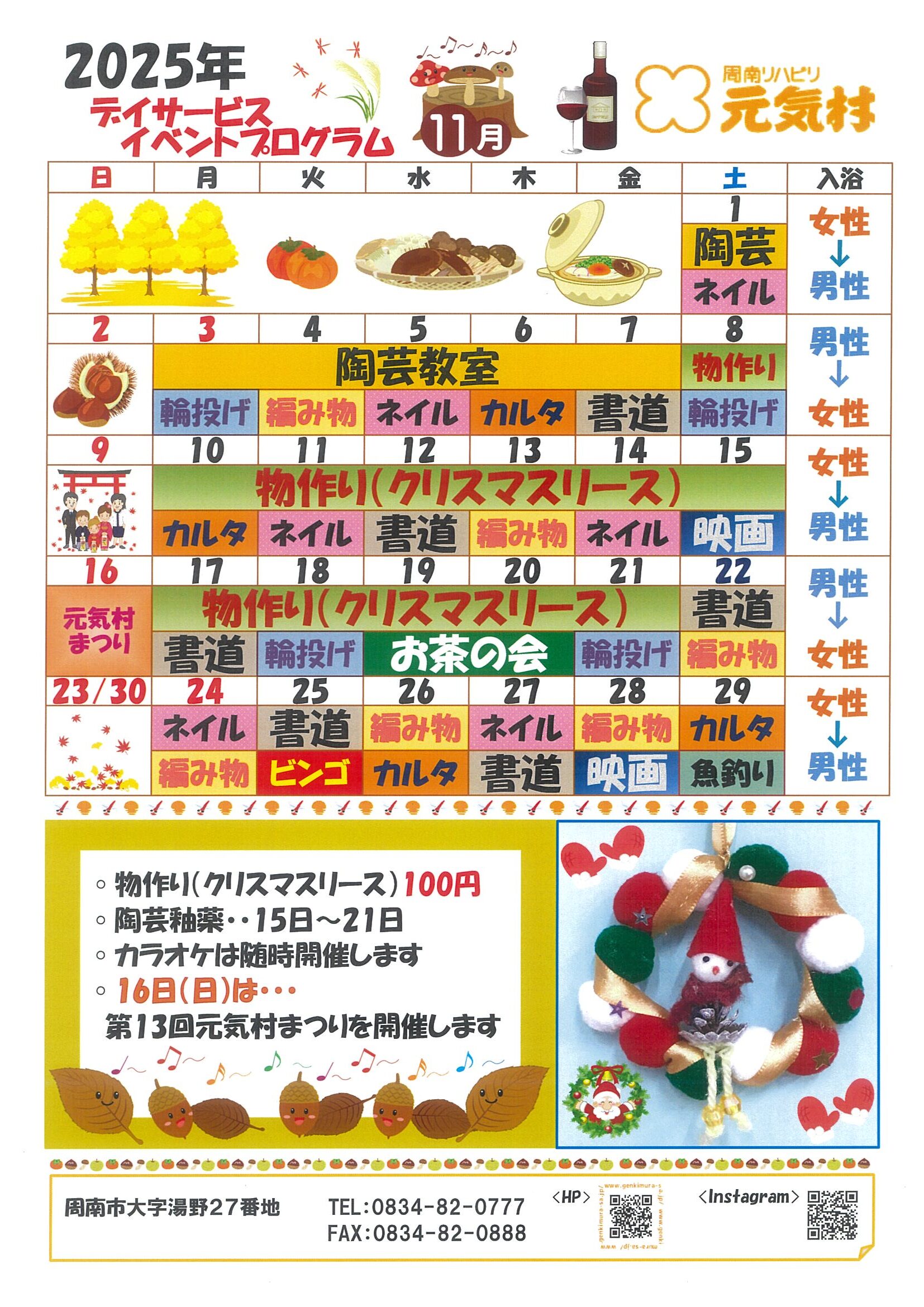 デイサービスセンターより11月プログラムのお知らせ