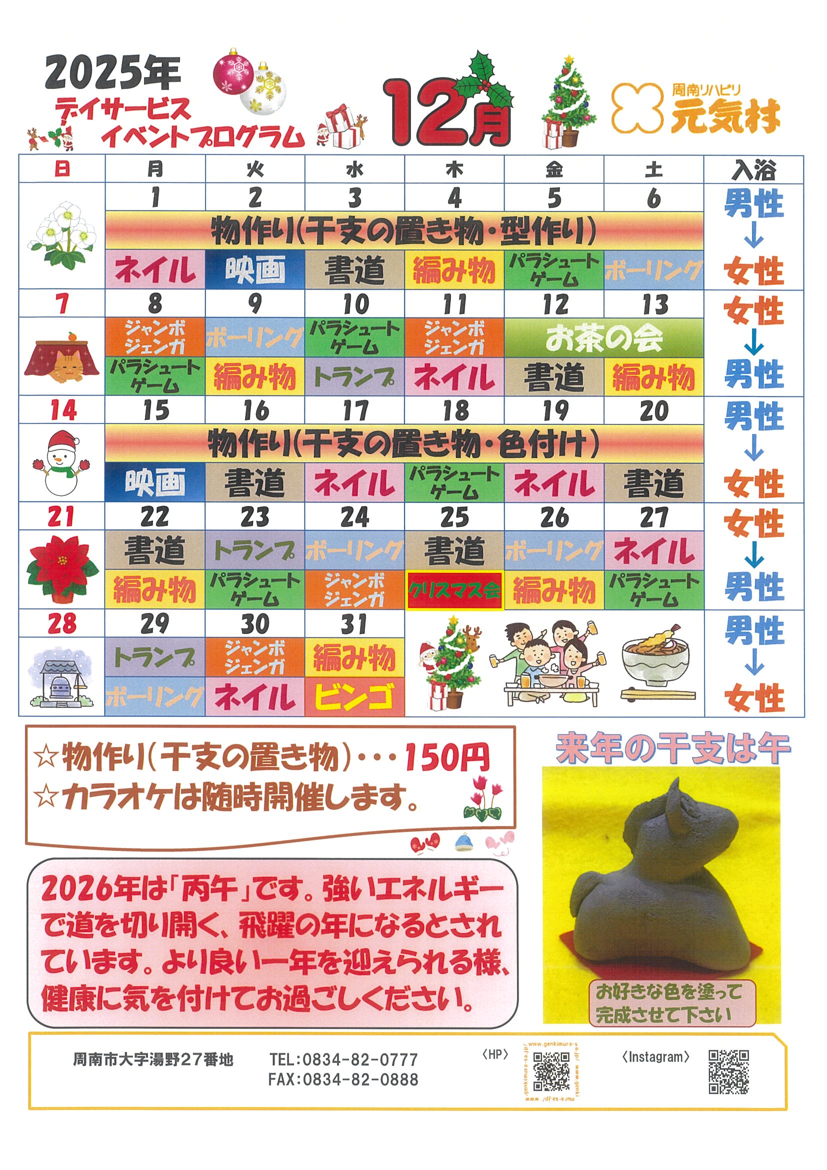 さて、デイサービスセンターから12月のイベントプログラムをお知らせいたします。
