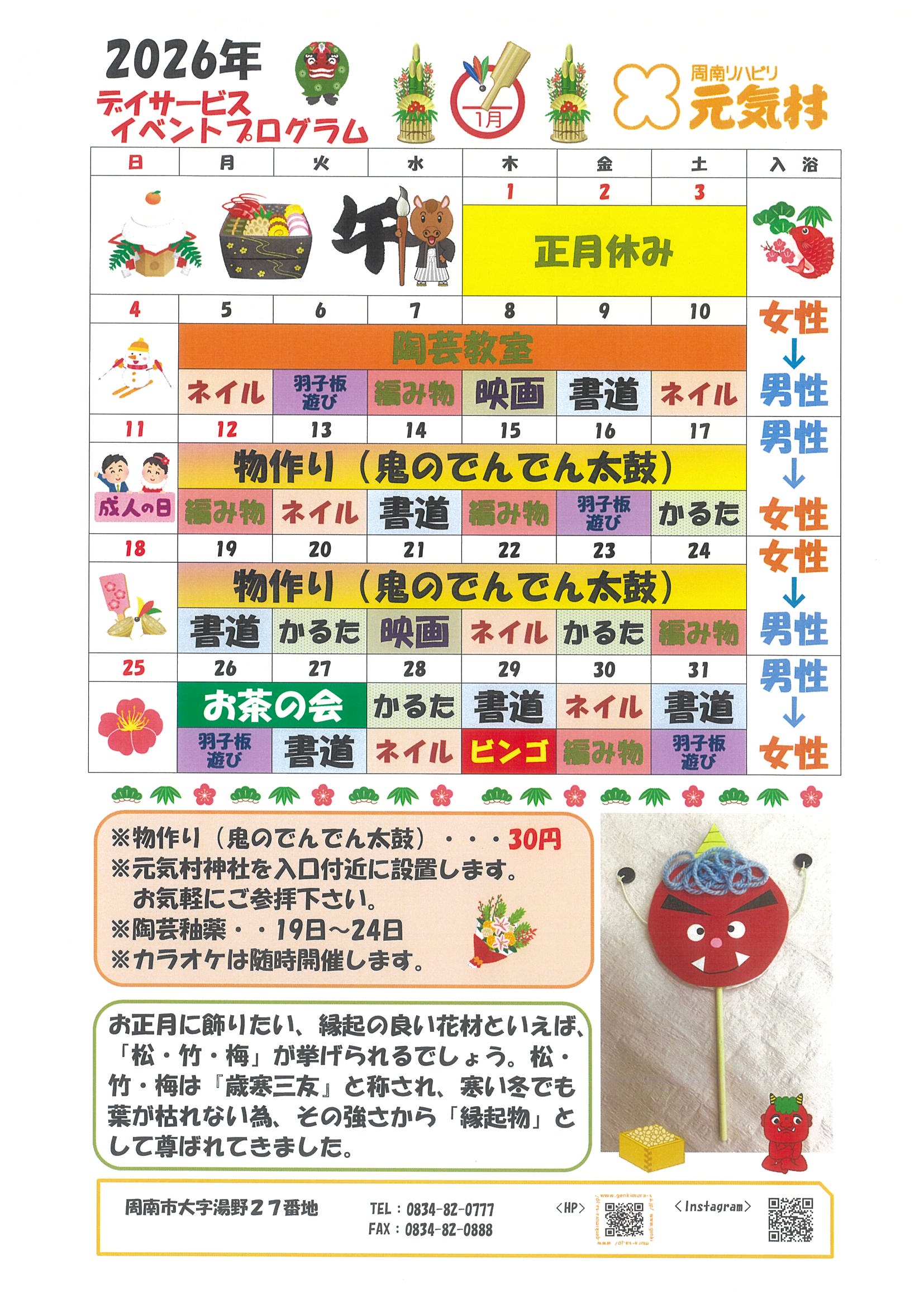 デイサービスセンターより1月プログラムのお知らせ
