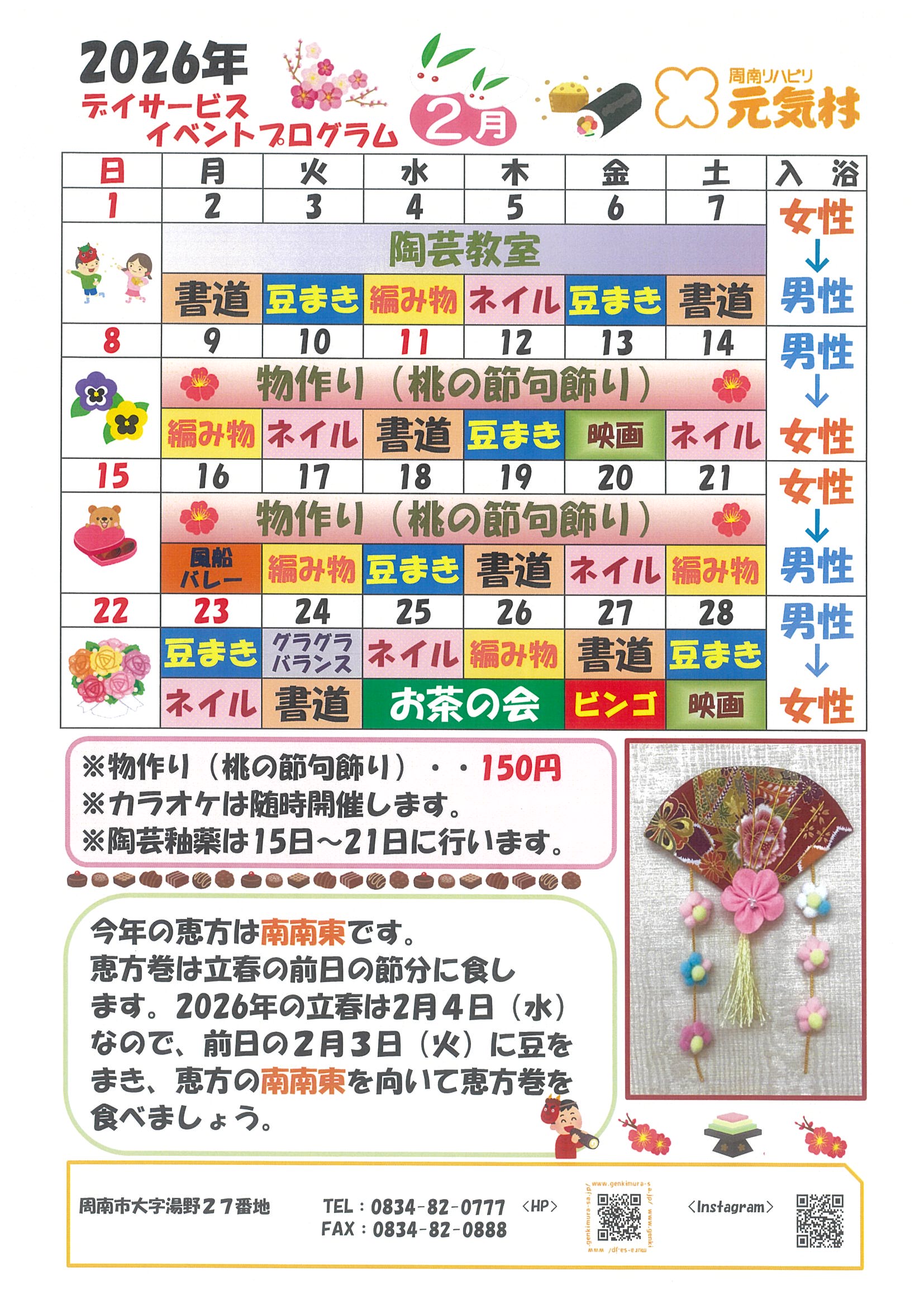 さて、デイサービスセンターから2月のイベントプログラムをお知らせいたします。